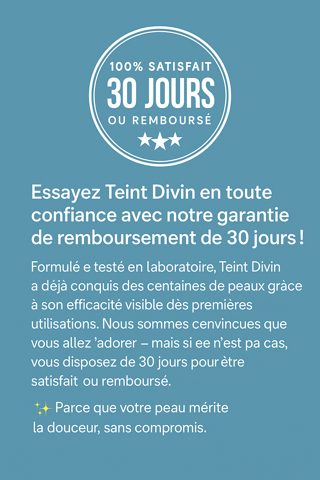 Révélez l’éclat naturel de votre peau La puissance de Teint Divin réside dans sa formule exclusive à base d’huiles végétales précieuses reconnues pour leurs propriétés apaisantes, nourrissantes et illuminatrices.