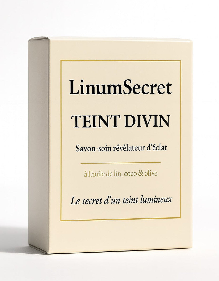 Découvrez LinumSecret – Teint Divin, un savon soin unique formulé avec 20% d’huile de lin et enrichi en huiles précieuses de coco et olive.